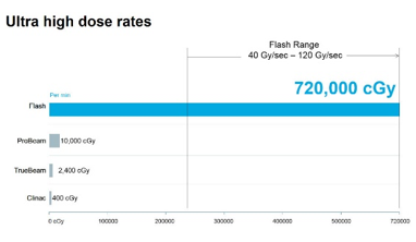 在2018年10月北美放射腫瘤學(xué)會(huì)年會(huì)上,瓦里安宣布了具有“諾貝爾獎(jiǎng)”意義的超高劑量極速癌癥治療方法——“Flash”。這將是革命性的最新粒子治療方法。Flash 療法是一種非侵入性治療,以極高的劑量及劑量率(72萬cGy/分鐘)在極短的時(shí)間里(1秒內(nèi))對(duì)人體癌癥部位釋放質(zhì)子束流。在一次照射后,癌癥細(xì)胞能就被摧毀而正常細(xì)胞損害顯著降低。目前已經(jīng)基本完成動(dòng)物試驗(yàn),不久將進(jìn)入臨床試驗(yàn)階段。