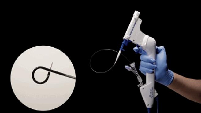 The CrossBow with Adaptor 用于腹腔鏡手術后閉合套管針傷口。