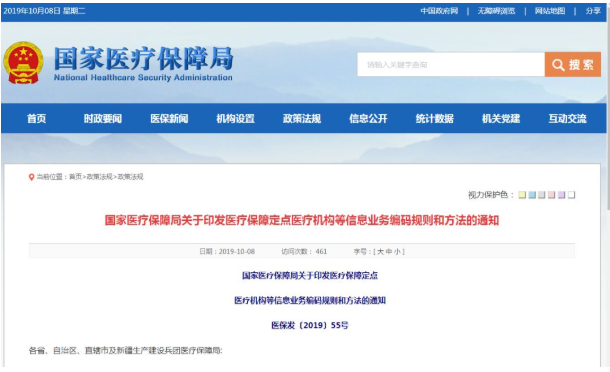 2019年10月8日,國家醫(yī)保局發(fā)布《醫(yī)療保障定點醫(yī)療機構等10項信息業(yè)務編碼規(guī)則和方法》,公布定點醫(yī)療機構、醫(yī)保按病種結算病種以及醫(yī)保日間手術病種等10項信息業(yè)務編碼規(guī)則和方法。