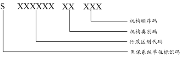 第1部分:醫(yī)保系統(tǒng)單位標識碼,用1位大寫英文字母“S”表示。