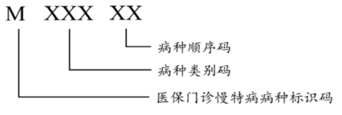 第1部分:醫(yī)保門診慢特病病種標識碼,用一位大寫英文字母“M”表示。