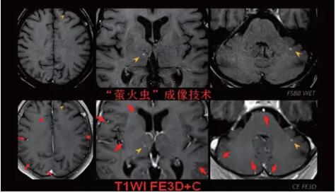 此技術(shù)主要用于神經(jīng)系統(tǒng)惡性腫瘤,以及其他腫瘤腦轉(zhuǎn)移瘤篩查。傳統(tǒng)情況下做腫瘤腦轉(zhuǎn)移篩查,很容易漏掉5mm以下小病灶,臨床發(fā)現(xiàn)后干預(yù)治療比較晚,要實(shí)現(xiàn)2mm高空間分辨率和超薄層全腦掃描在保證信噪比的情況下需要很長時間大概十多分鐘,而且薄層增強(qiáng)序列顱內(nèi)血管呈高亮信號,會干擾顱內(nèi)小病灶的觀察,血管和小病灶區(qū)分困難。佳能”螢火蟲”成像技術(shù)既可以實(shí)現(xiàn)高空間分辨率和超薄層(最薄可實(shí)現(xiàn)0.2mm)全腦掃描,掃描時間短,2-3分鐘即可實(shí)現(xiàn)全腦3D掃描,同時避免了血管高亮信號的干擾,對顱內(nèi)原發(fā)或繼發(fā)的微小腫瘤檢查有重大意義。“螢火蟲”成像技術(shù)具有磁敏感效應(yīng),對于亞急性血敏感敏感,可以區(qū)分出血和強(qiáng)化的腫瘤。