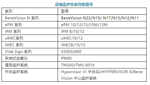 邁瑞的監(jiān)護(hù)儀系列包括BeneVision N系列、ePM系列、iPM系列、uMEC系列、iMEC系列、Vital Sign系列、遙測系列以及中央監(jiān)護(hù)站和手持式血氧儀。