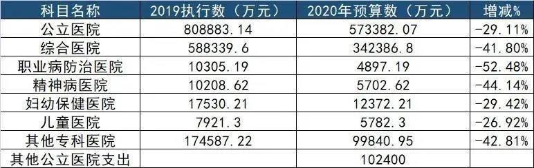 其他專科醫(yī)院:2020年預算數(shù)為99,840.95萬元,比2019年執(zhí)行數(shù)減少74,746.27萬元;