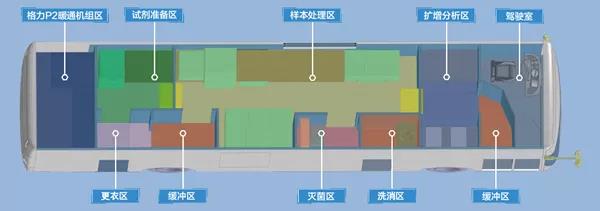 據(jù)公告顯示,圣湘生物移動(dòng)P2+核酸檢測車長12米,按照生物安全二級以上(P2+)實(shí)驗(yàn)室標(biāo)準(zhǔn)打造,設(shè)置了試劑準(zhǔn)備區(qū)、樣本處理區(qū)、擴(kuò)增分析區(qū)和滅菌區(qū)等四個(gè)主要區(qū)域。單臺(tái)車的檢測能力可達(dá)5萬人份/天(10混1),突破了以往檢測車的人次上限,并且可以隨到隨檢,大大縮短了民眾到醫(yī)院或核酸檢測點(diǎn)的距離,減少了就診過程中對人群的接觸。