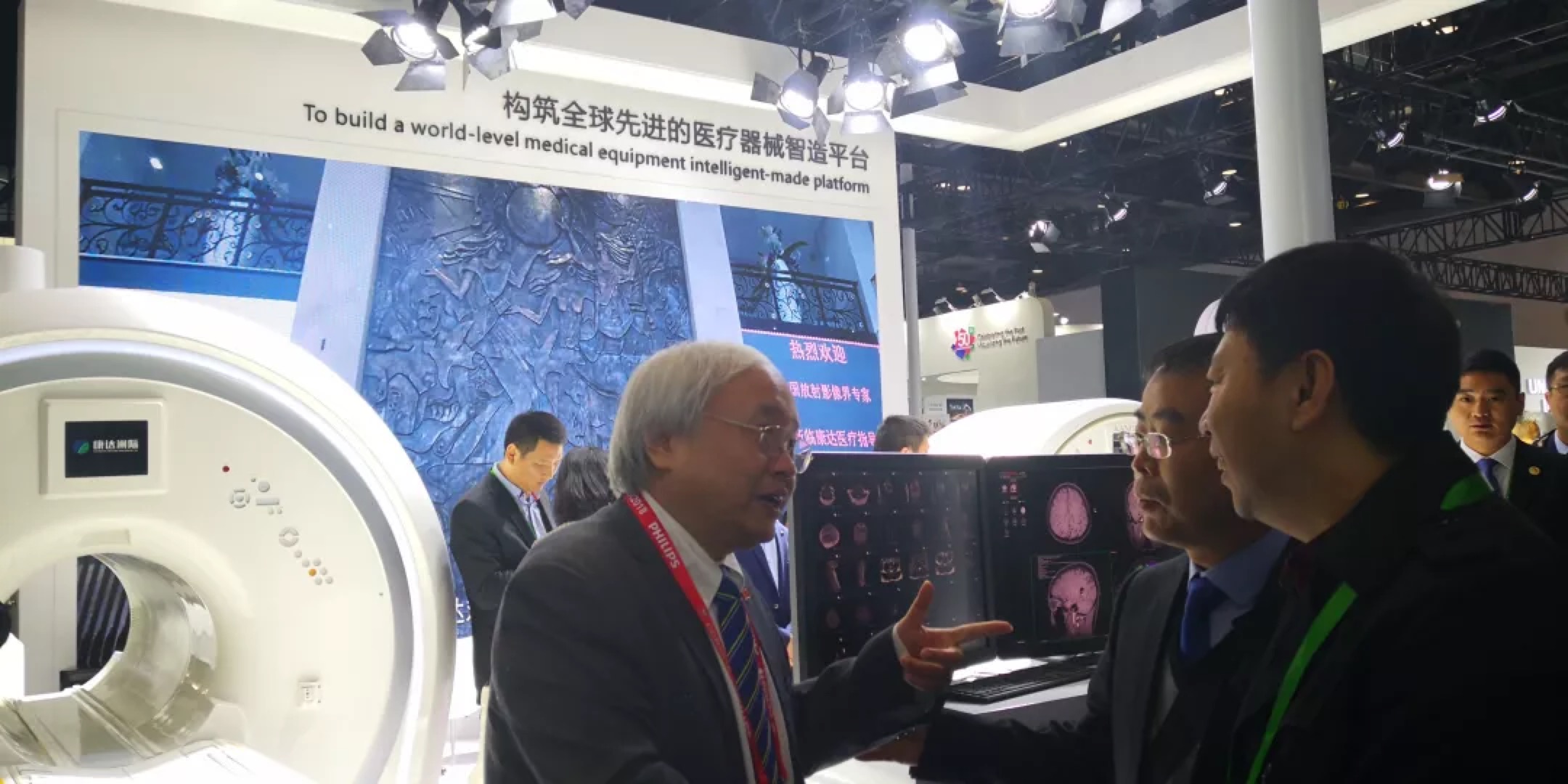 中國放射學(xué)家、中華醫(yī)學(xué)會放射學(xué)分會主任委員、北京協(xié)和醫(yī)院放射科主任金征宇一行也特意來到了康達洲際展臺。金征宇教授在聽取了康達的工作人員對康達洲際1.5T磁共振等一系列產(chǎn)品的介紹后,對康達洲際在產(chǎn)品的研發(fā)和創(chuàng)新上給予了高度肯定。
