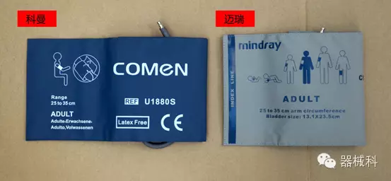 兩家都采用防水面料和薄膜氣囊??坡伾?,不知道是不是因?yàn)樯钌团K。袖套看起來(lái)要厚點(diǎn),不過(guò)摸起來(lái)也一樣柔軟。邁瑞是不經(jīng)臟的白色,拿起來(lái)會(huì)發(fā)現(xiàn)更柔軟?;蛟S是深色顯得明亮,對(duì)比之下,總覺得邁瑞的袖套看起來(lái)舊舊的。