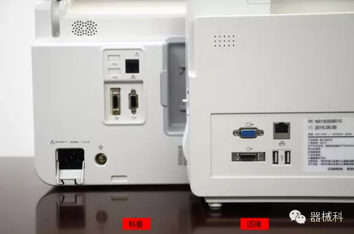 兩家的電源線都采用了標(biāo)準(zhǔn)的電源插頭,這種電源線比較普遍,應(yīng)急時(shí)比較容易找到合適的線。邁瑞線長(zhǎng)1.8,一般情況下夠用。科曼3米長(zhǎng),在使用上可以更加靈活。線短,整理起來(lái)方面;線長(zhǎng),使用場(chǎng)景更多。
