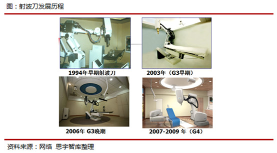 射波刀由斯坦福大學醫(yī)療中心腦外科及放射腫瘤學教授的John R. Adler研發(fā)。2001年,射波刀獲FDA準許治療身體任何部位的腫瘤。射波刀無須使用金屬頭架或體架,它采用計算機立體定位導航和自動跟蹤靶區(qū)技術,是新型的大型立體定向放射治療設備。